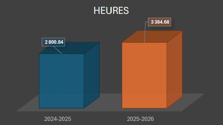 Heures : 2024-2025 2 800,84 2025-2026 3 384,68