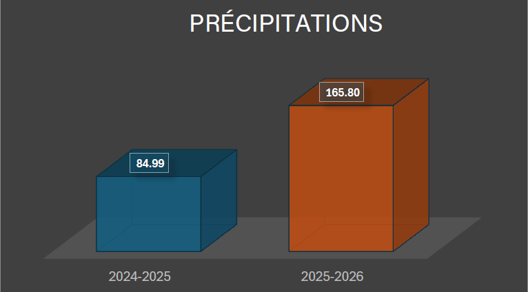Précipitations : 2024-2025 84,99 2025-2026 165,80