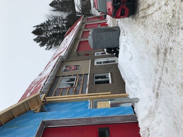 - L’isolation intérieure et extérieure, et le pare-vapeur sont complétés.