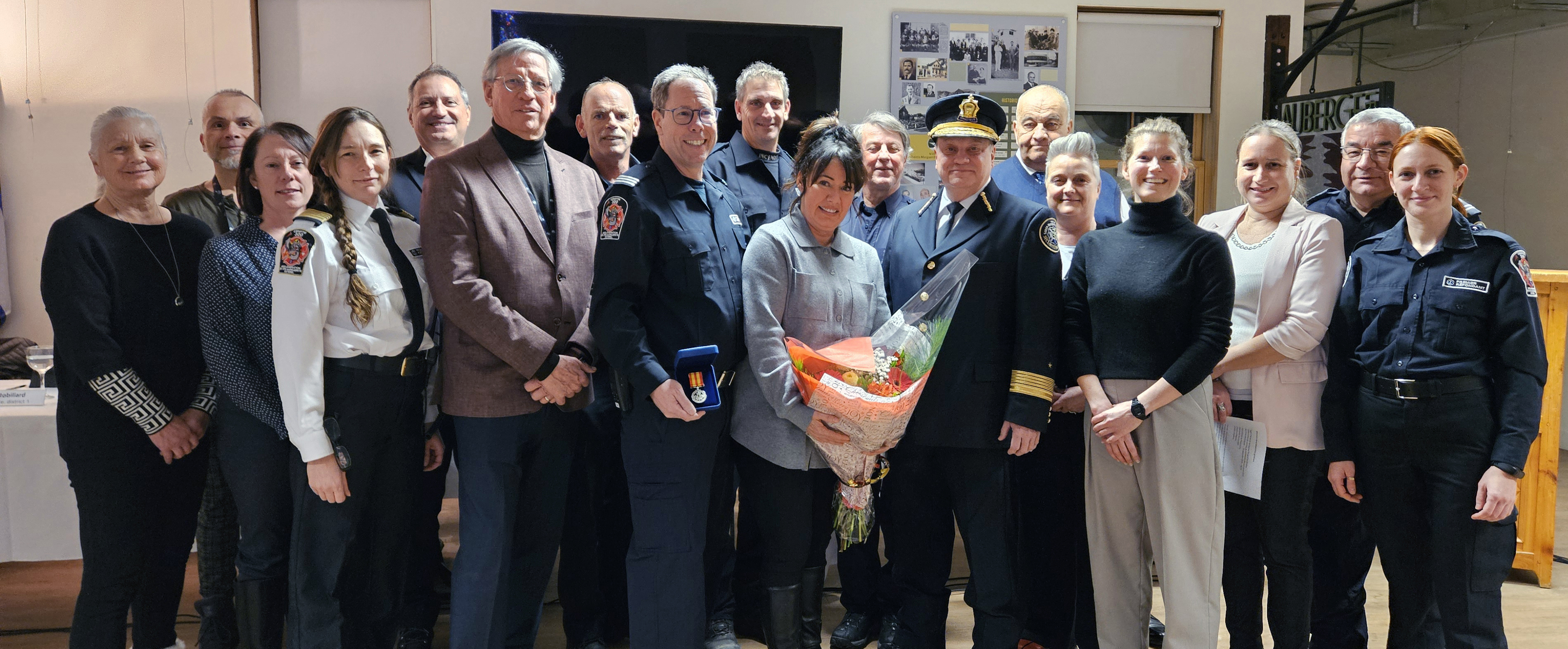 Lors de la cérémonie, la directrice générale Julie Forgues a également mis en lumière la patience et l’appui constant de Brigitte, la conjointe du capitaine, rappelant que derrière chaque pompier se trouve une famille qui partage les sacrifices et les absences imposées par la vocation.